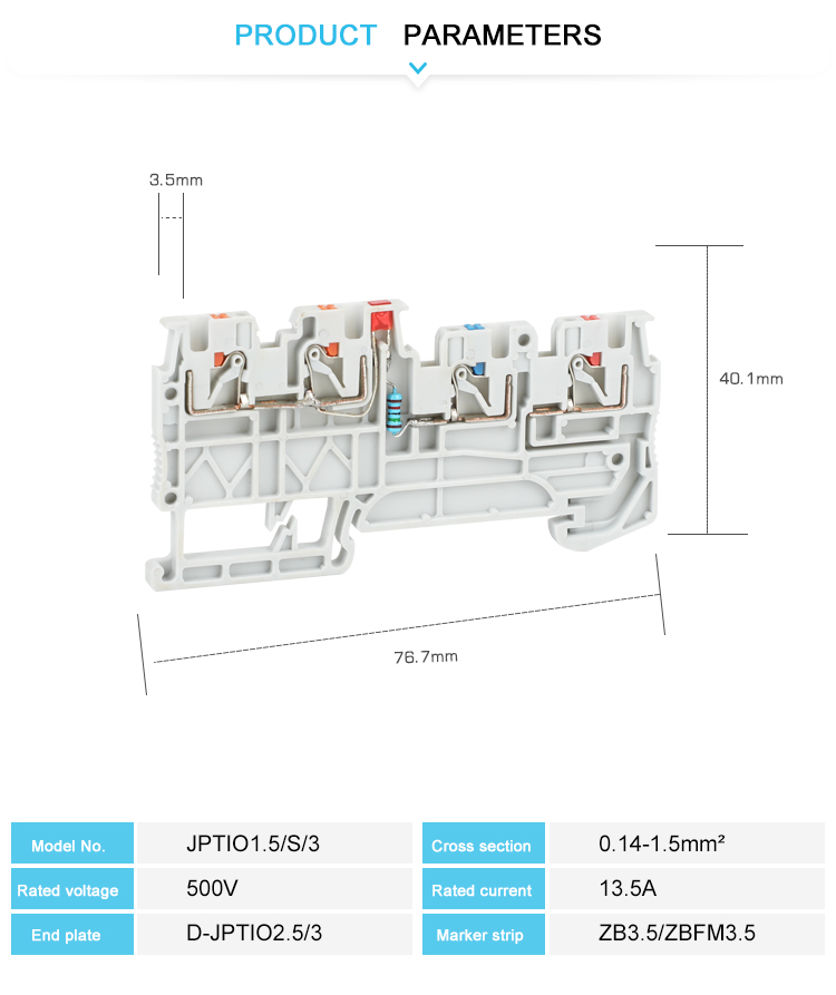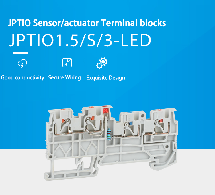 JPTIO1.5/S/3-LED(24V) liitin liitin käyttää palamista hidastavaa nailonia PA66, messinkijohdinta ja ruostumattomasta teräksestä valmistettua puristusjousta sähköturvallisuuden ja mekaanisen lujuuden varmistamiseksi ankarissa työoloissa.