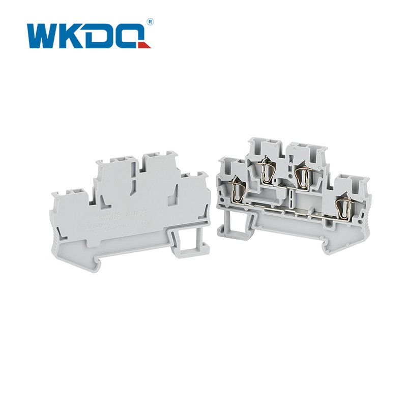 Monikerroksinen jousiliitin on valmistettu palonestoaineesta PA66 ja nikkelipinnoitetusta messingistä. Siinä on ainutlaatuinen kaksikerroksinen potentiaaliintegraatiorakenne, joka mahdollistaa yhden kuoren sijoittamisen useille piireille ja säästää kolminkertaisesti johdotustilaa. Työkaluton puristustoiminto yhdistettynä löystymisen ja kaasunpoiston tiiviiseen rakenteeseen ja korroosionkestävään kosketuspisteeseen takaavat pitkän aikavälin vakaan virransyötön. Etuosan DIN-kisko 35 mm yleisasennus ja tasainen tunnistusalue yksinkertaistavat hallintaa. Se on yhteensopiva päätykansien, liitettävien siltojen ja muiden lisävarusteiden kanssa, jotka täyttävät kompaktien skenaarioiden tiheän sähkönjakelun vaatimukset.